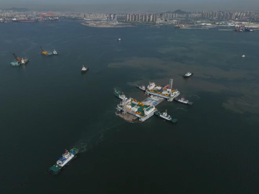 大连湾海底隧道项目E16管节施工现场。(受访者供图)
