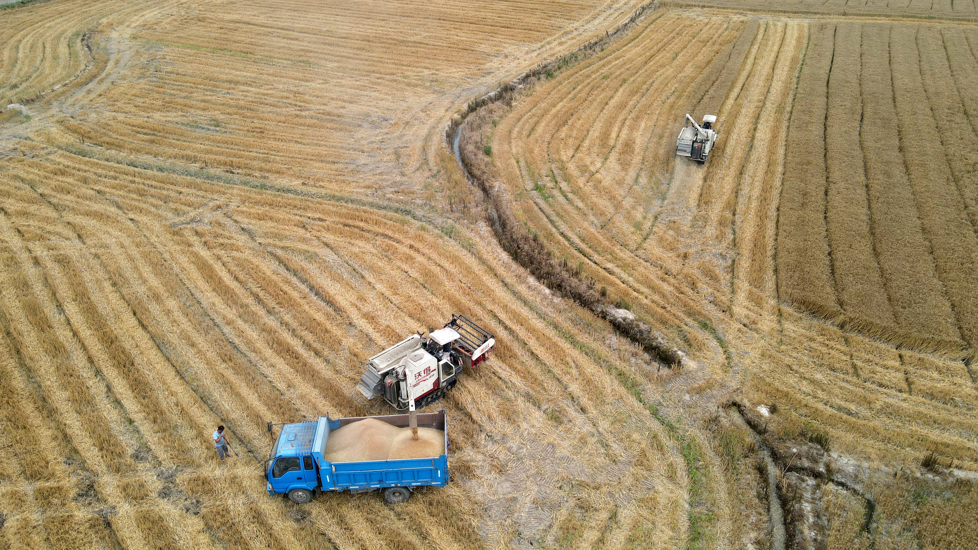 连日来,记者在安徽多地走访看到,江淮大地一派抢收抢种的繁忙景象,种粮农民享受着丰收的喜悦。