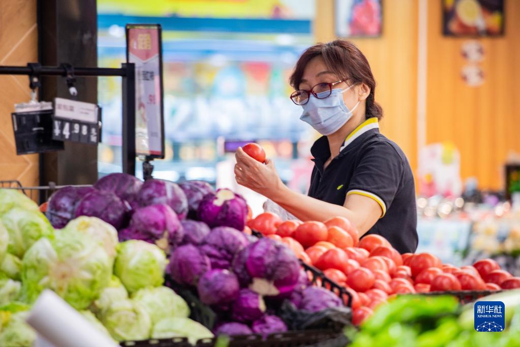 6月10日,消费者在江苏省南京市一家超市选购蔬菜。 新华社发(苏阳 摄)