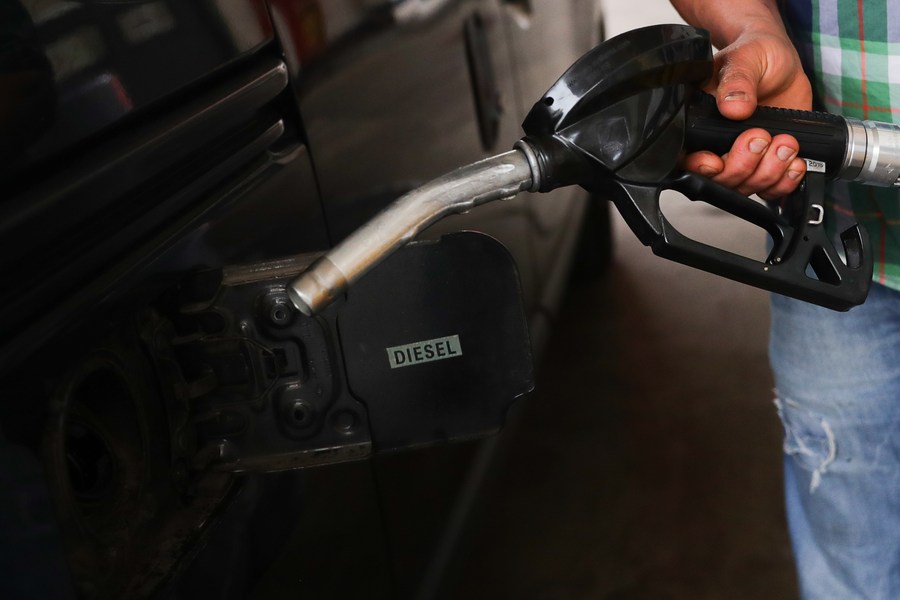 2022年3月29日,一名男子在比利时布鲁塞尔的一个加油站为车辆加油。新华社记者郑焕松摄
