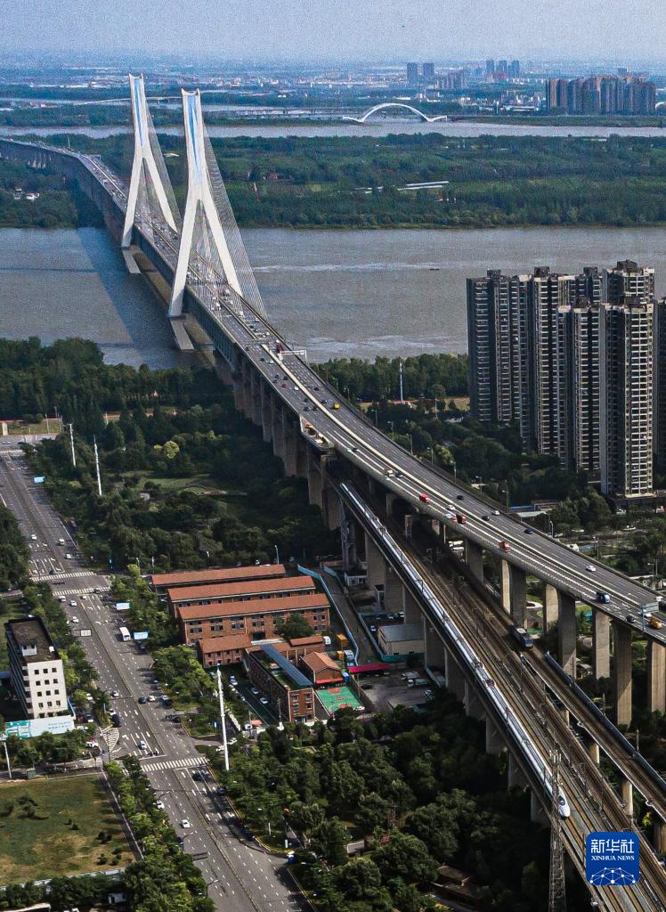 6月20日,一列动车组列车在京广高铁京武段武汉站附近行驶(无人机照片)。 新华社记者 肖艺九 摄
