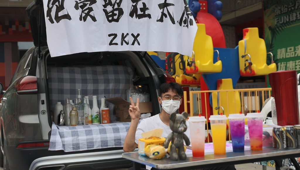 每天傍晚6点左右,在位于太原市晋源区的长风·国贸第六馆的一片空地上,陆续驶来的私家车一字排开,打开后备厢、挂上氛围灯、支开摊位桌、摆出琳琅满目的商品,不一会这里变得异常热闹。