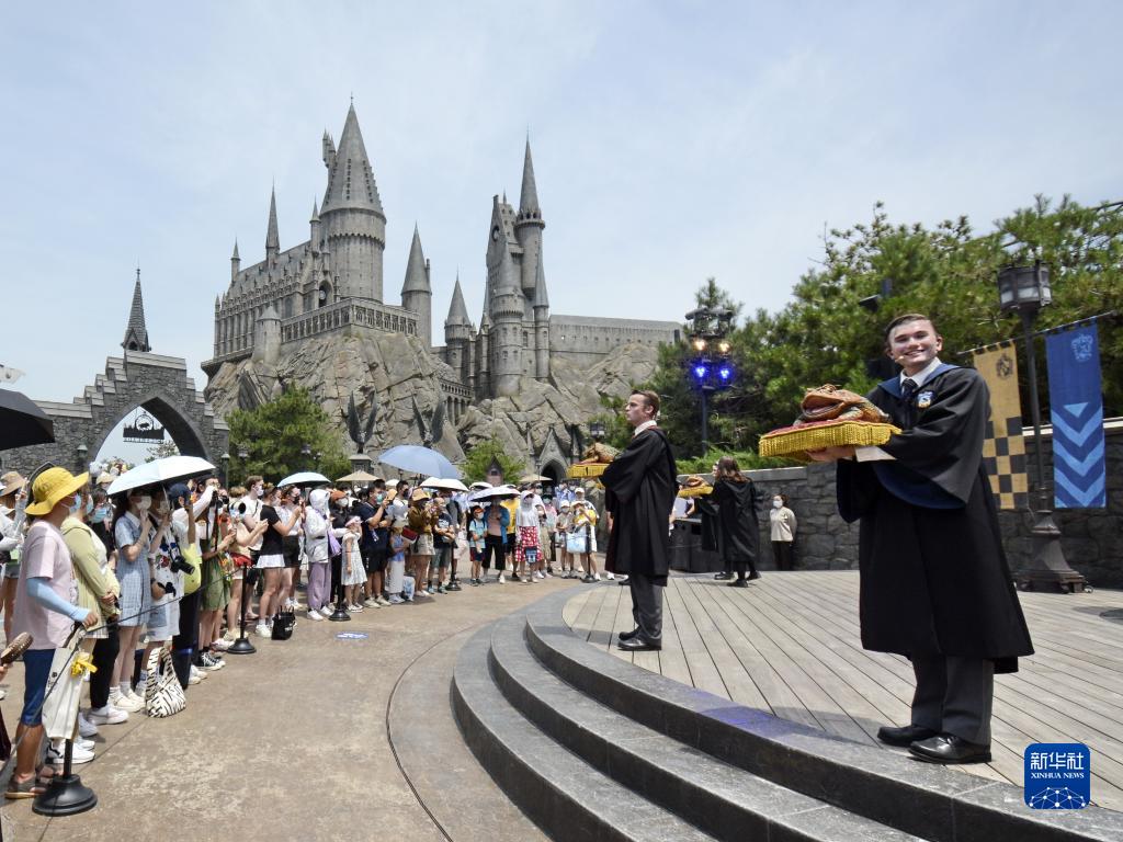 游客在北京环球影城主题公园内观看表演(2022年6月25日摄)。新华社记者 李欣 摄