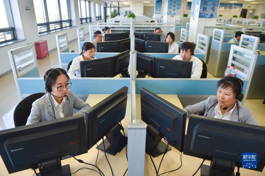 在位于北京经济技术开发区的12345市民热线话务大厅,工作人员接听热线电话(2019年11月13日摄)。新华社记者 彭子洋 摄
