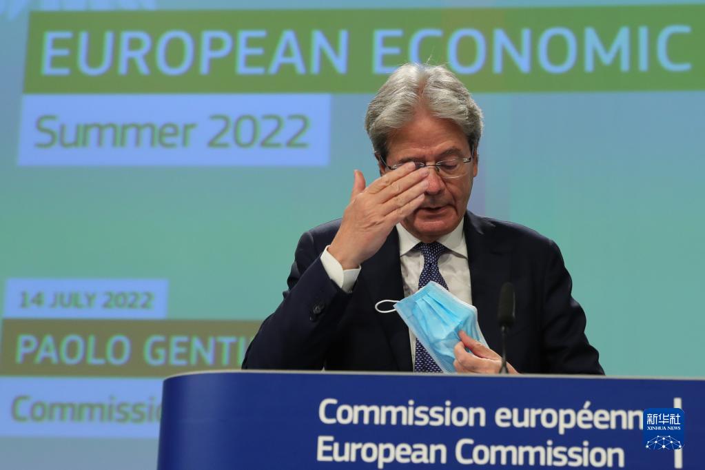 7月14日,在比利时布鲁塞尔,欧盟委员会负责经济事务的委员保罗·真蒂洛尼出席欧洲经济预测新闻发布会。新华社记者 郑焕松 摄