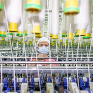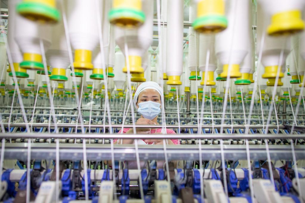 6月26日,在山东正凯新材料股份有限公司,工作人员在加工高端纱线。(新华社记者郭绪雷摄)
