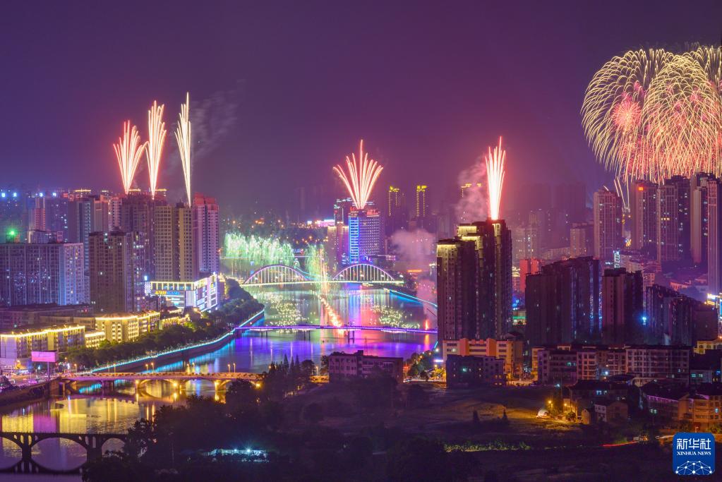 这是湖南省浏阳市的烟花表演(2019年5月10日摄)。新华社发(浏阳市委宣传部供图)