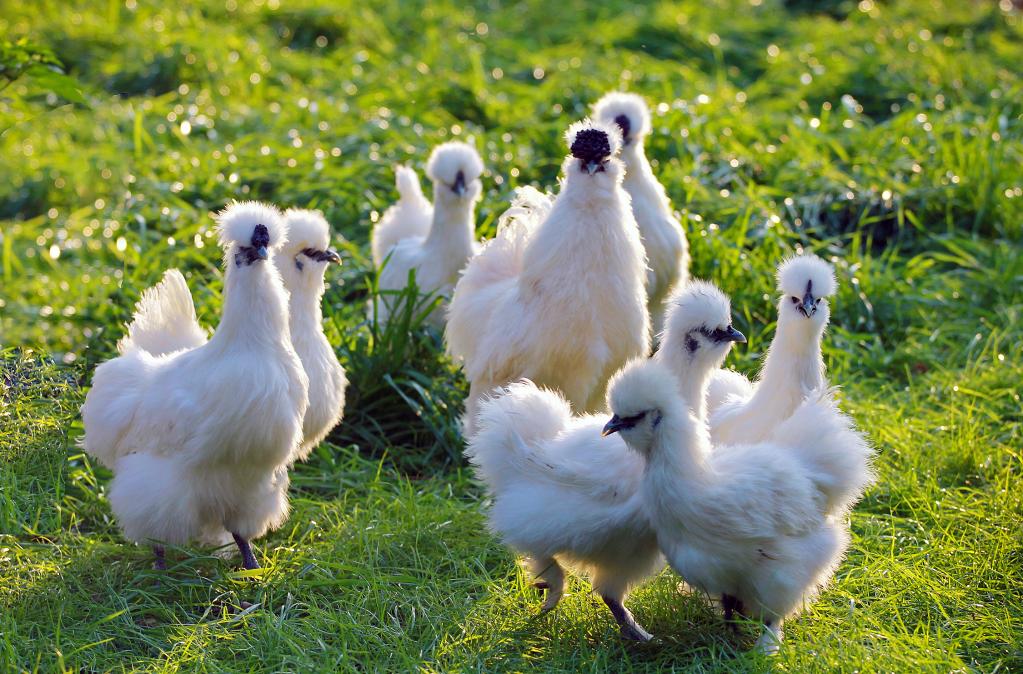 头顶蓬松绒毛的泰和乌鸡憨态可掬,在草地上悠闲“散步”。(受访者供图)