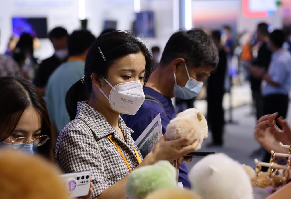 9月3日,人们在国家会议中心秘鲁展台选购商品。新华社记者 戚晓毅 摄