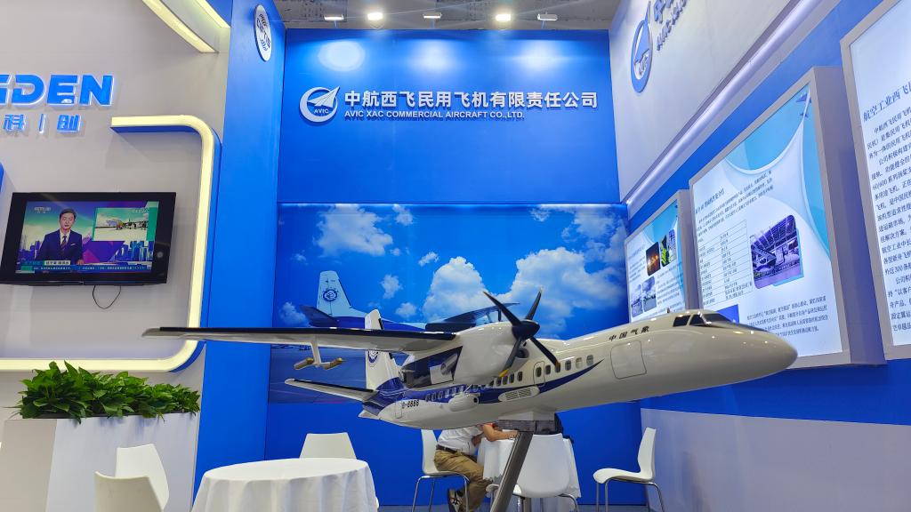 服贸会上的新舟60气象机模型展示(中国气象服务协会供图)