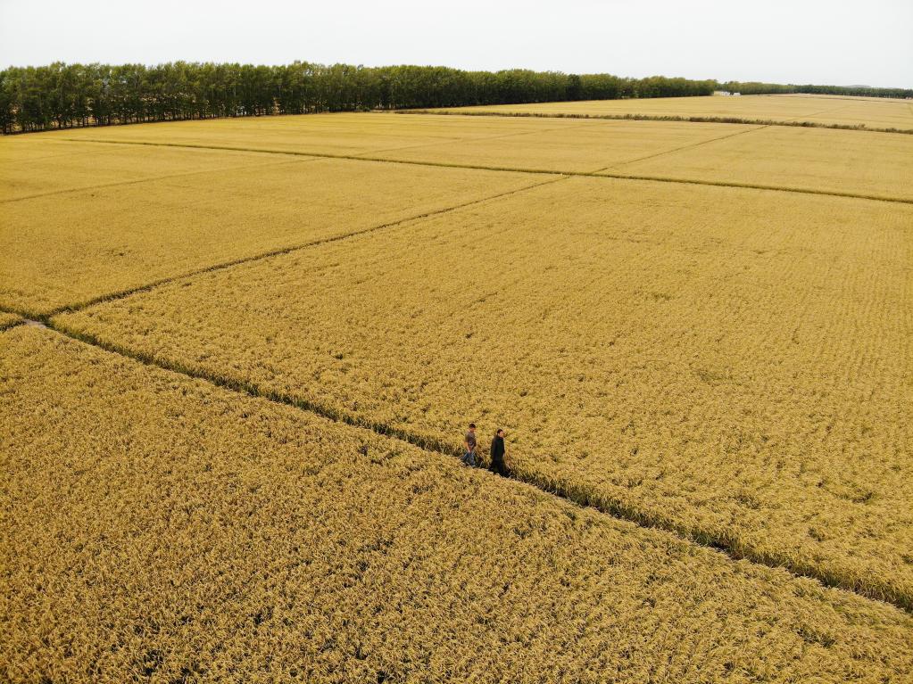 北大荒集团建三江分公司七星农场有限公司一块稻田中,种植户在察看水稻的长势。新华社记者王鹤 摄