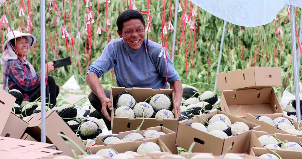 杨郎村村民喜迎网纹瓜丰收。(受访者供图)