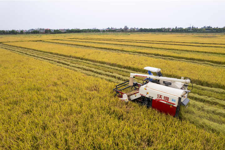 在南昌智慧大田农业科技发展有限公司的一处万亩智慧农场,秋收时节几乎看不到人。金灿灿的稻田中,一台台无人驾驶收割机正快速收割水稻,谷粒落入存储仓,秸秆被切碎回田。