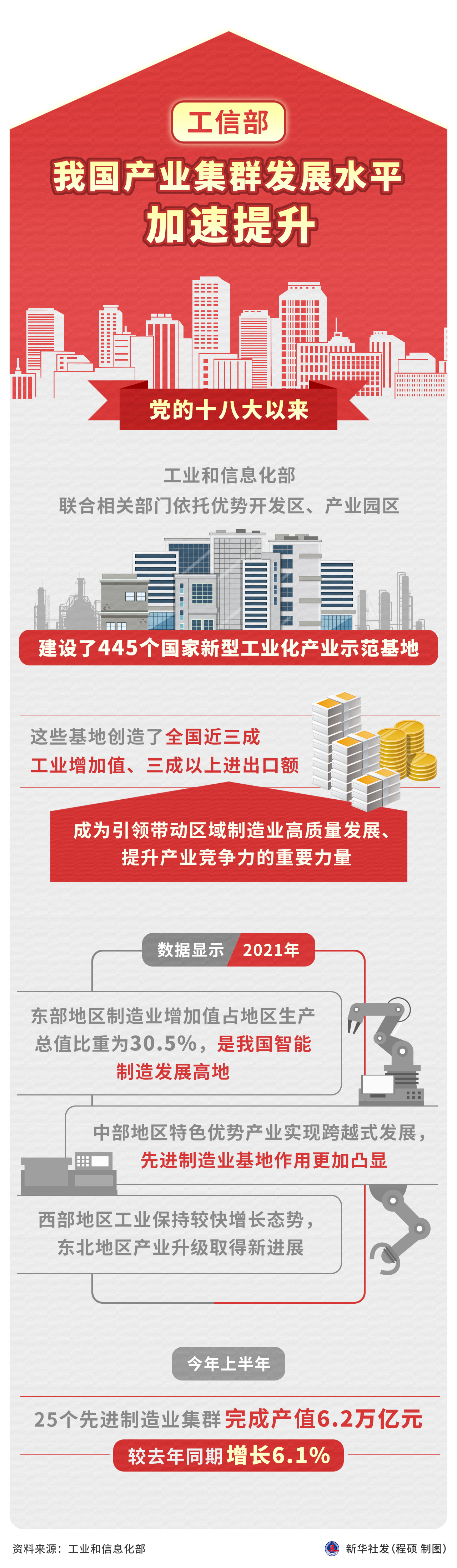 他说,党的十八大以来,工业和信息化部联合相关部门推进制造业重大生产力布局调整优化,制造业区域发展更加协调。