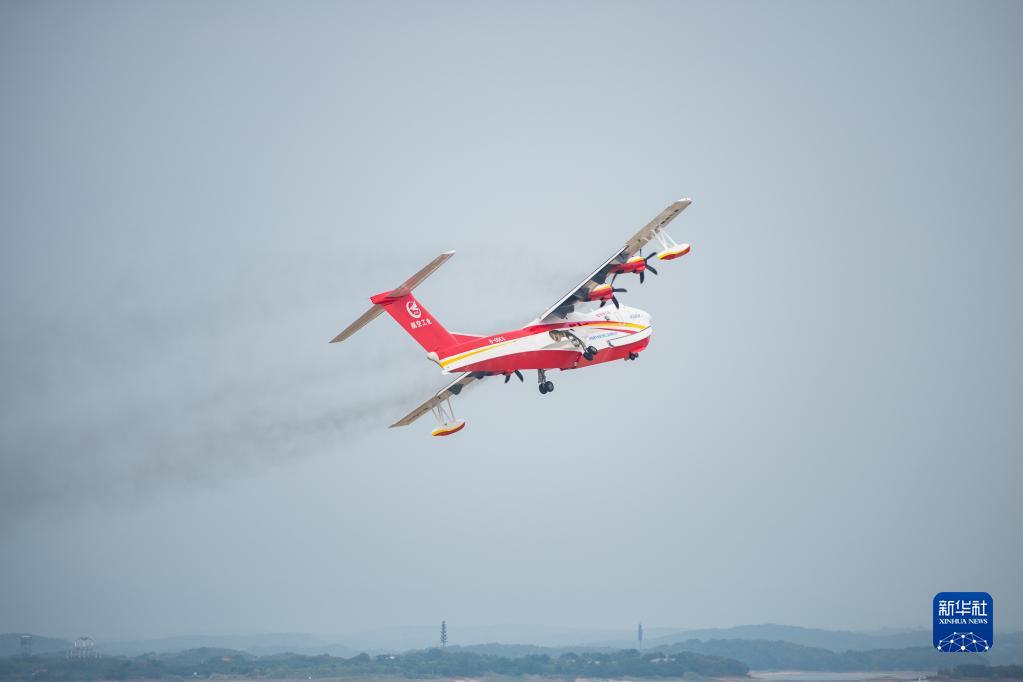 9月27日,“鲲龙”AG600M在空中飞行。新华社记者 伍志尊 摄