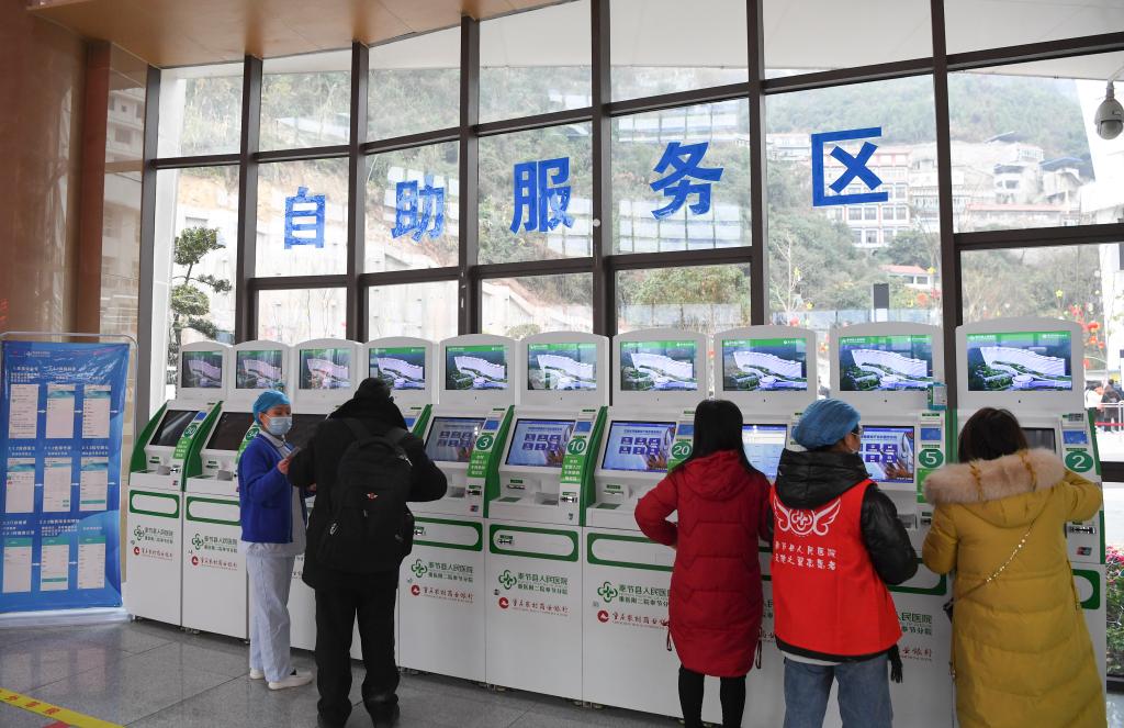 重庆奉节县人民医院新院区门诊大厅自助服务区(新华社记者王全超 摄)