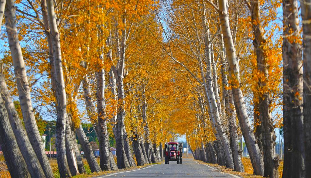 10月18日,在辽宁沈阳市沈北新区兴隆台镇青年农场,车辆在运送刚收割的水稻。 新华社记者 杨青 摄