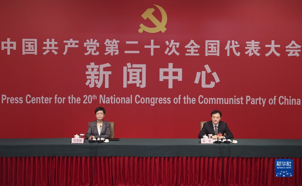 10月21日,中国共产党第二十次全国代表大会新闻中心举行记者招待会。生态环境部党组成员、副部长翟青围绕“建设人与自然和谐共生的美丽中国”主题与记者交流。新华社记者 宋彦桦 摄