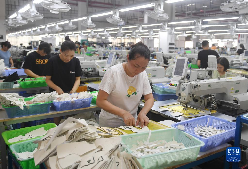 广西全州县一企业员工在车间内忙碌(8月24日摄)。新华社记者 陆波岸 摄
