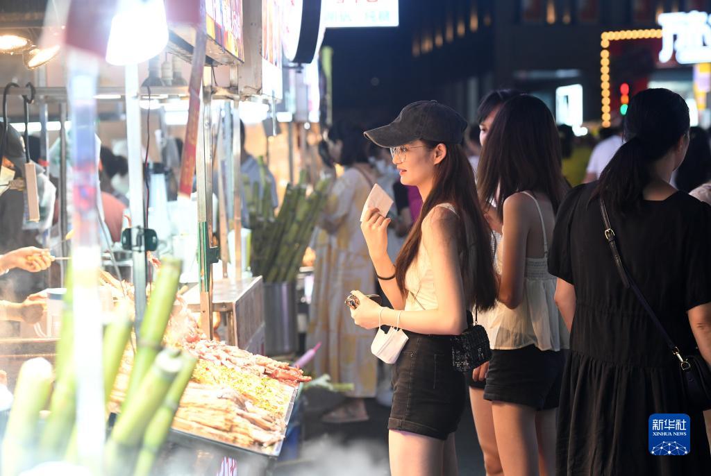 市民在广西南宁市中山路夜市休闲(8月3日摄)。新华社记者 陆波岸 摄