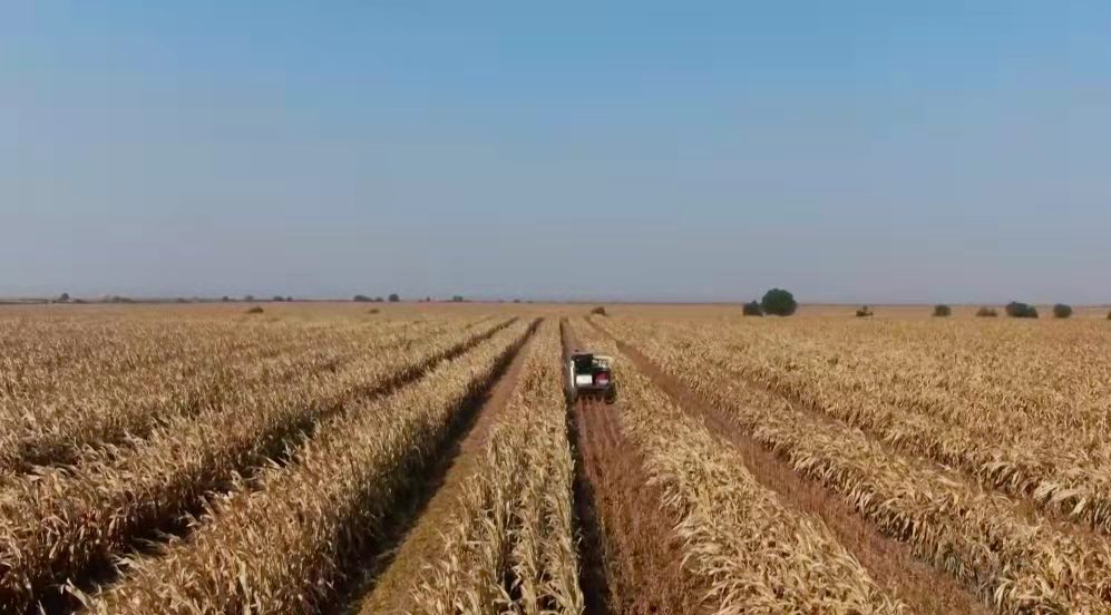金秋十月,山西省大豆玉米带状复合种植进入收获季,从南到北,收割机机声隆隆,农田里一派繁忙场景。