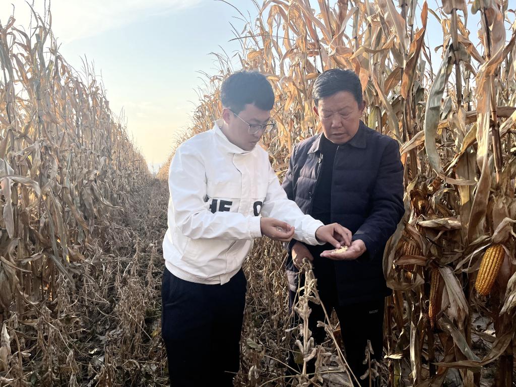 10月14日,太原市农技人员和种粮大户在田间交流。新华社记者王皓摄