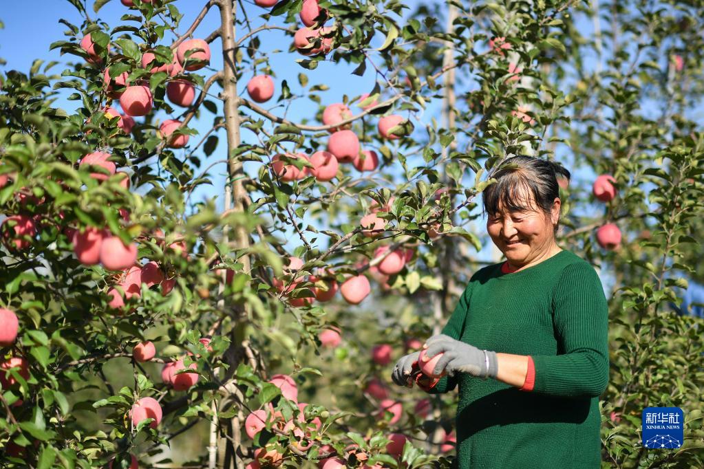 握住果实、轻轻一转,66岁的村民赵永东摘下一颗苹果。“家里20亩果园,去年赚了12万元。今年苹果品相更佳、行情更好,收入不会差。”说起种苹果,平时言语不多的他头头是道:“除了下苦功,还得会管理、懂技术。”