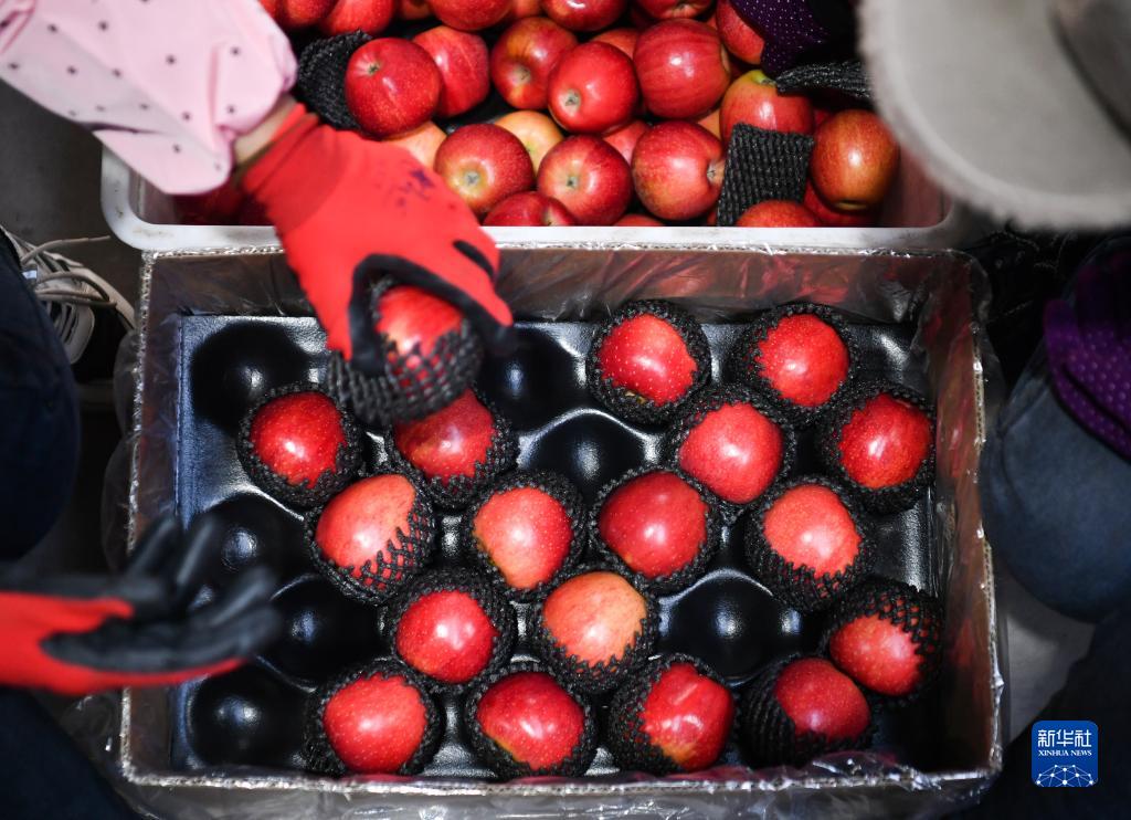 接完客户来电,果农乔桂梅走进果园,识别出客户认养的果树,动作利落地采摘、装箱,将苹果发往千里之外的北京。
