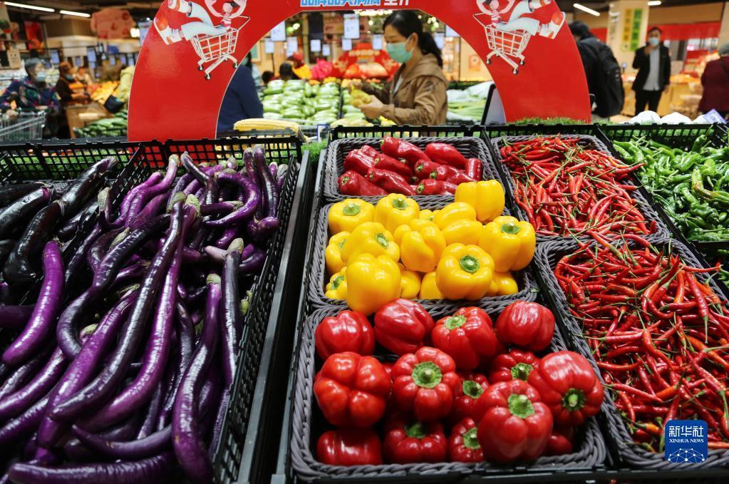 11月9日,顾客在江苏省无锡市一家超市内选购蔬菜。新华社发(还月亮 摄)
