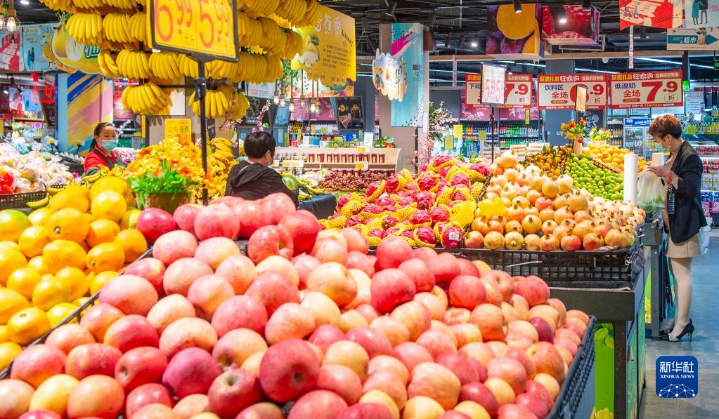 11月9日,顾客在贵州省从江县一家超市内选购水果。新华社发(卢忠南 摄)