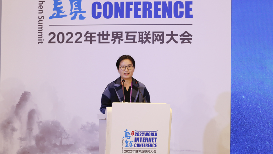 “全球发展倡议数字合作论坛”11月9日在浙江乌镇召开。图为阿里云公共事务高级专家楚楠作主题演讲。(新华网 张灵 摄)