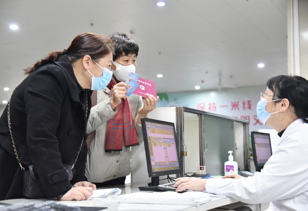 在福建省三明市沙县区总医院便民门诊窗口,群众在咨询特殊病种报销情况(2022年1月14日摄)。新华社发(许琰 摄)