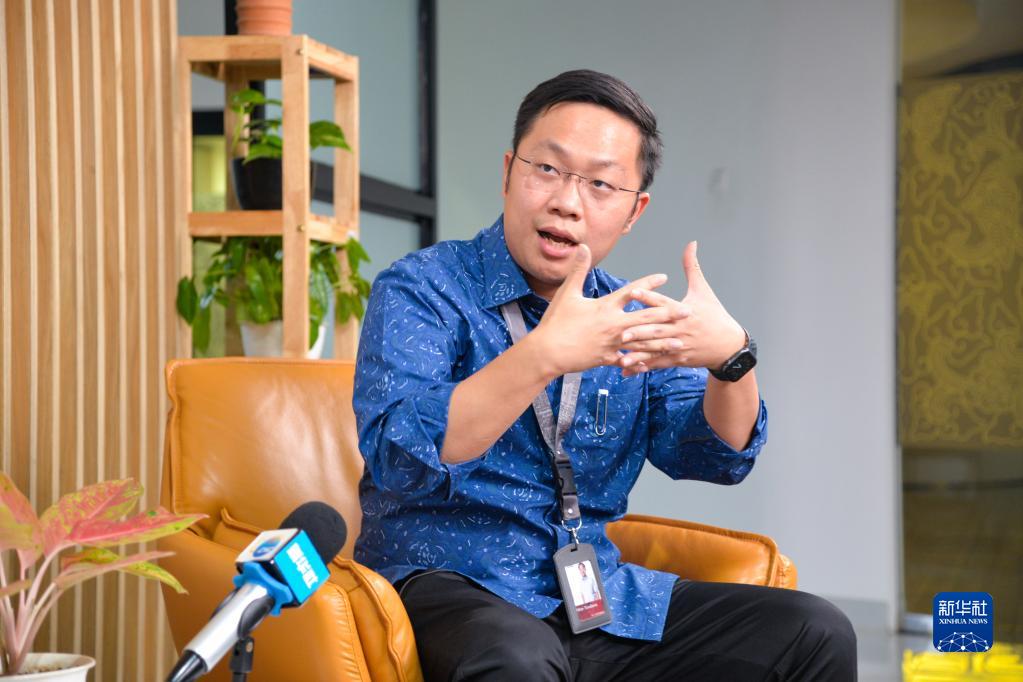 11月3日,在印度尼西亚首都雅加达,印尼中国高速铁路有限公司印尼方董事艾伦·坦迪奥诺接受新华社记者采访。新华社记者 徐钦 摄