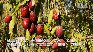 经过深秋阳光与风霜的双重“洗礼”之后,新疆塔里木盆地的红枣储满了“蜜糖”,获得丰收。