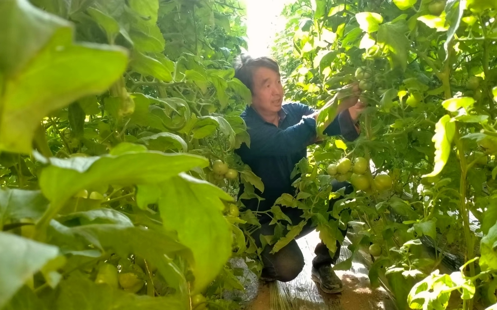 11月23日,在兰州市榆中县李家庄村,村民陈吉宝正在自家温室大棚打理西红柿。(受访者供图)