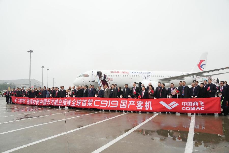 上海虹桥机场,东航接收C919现场。新华社记者丁汀 摄