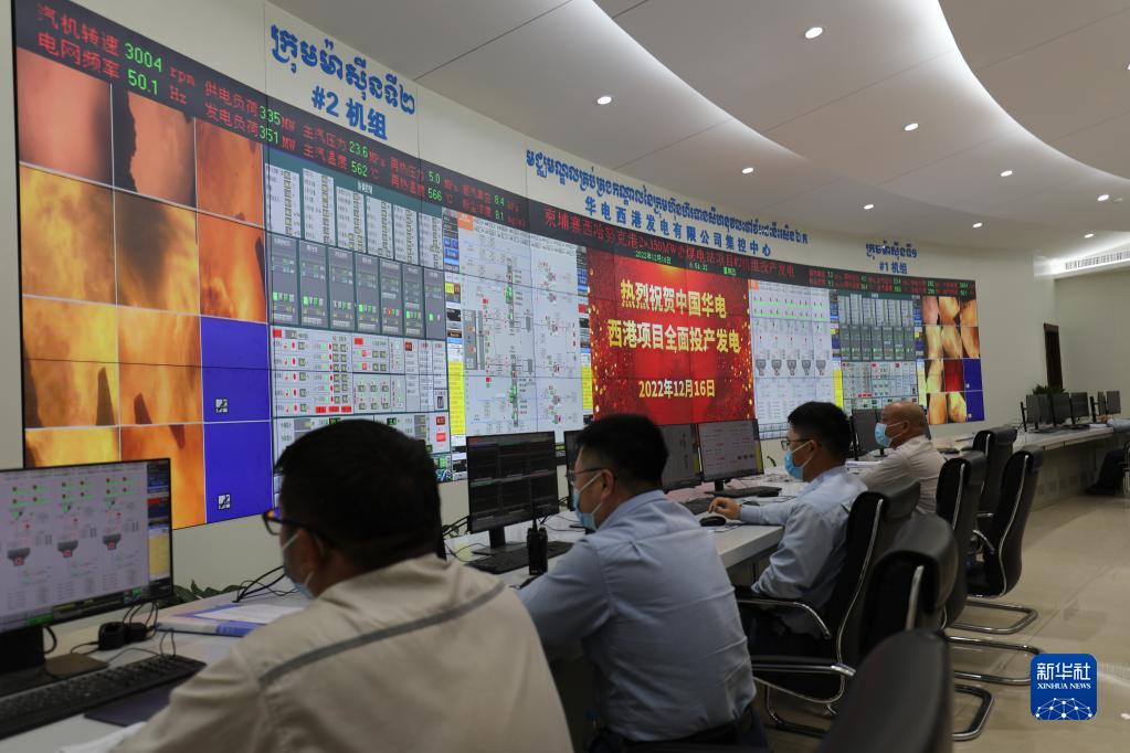 12月16日,工作人员在柬埔寨西哈努克港燃煤电站集控中心工作。新华社发(李欣琳摄)