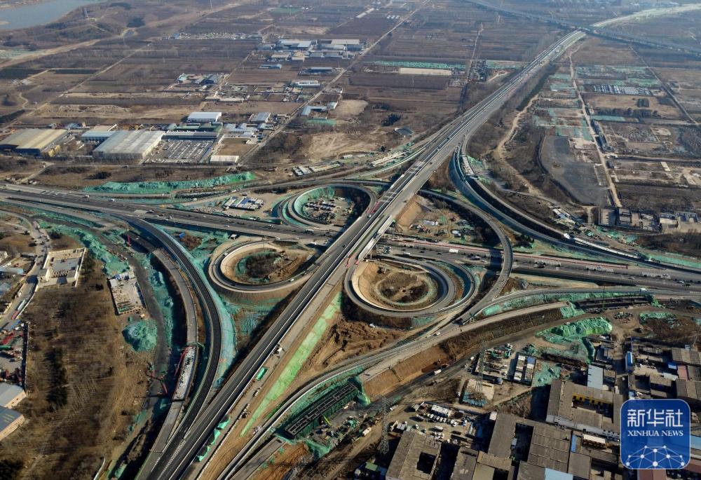12月15日,工人在石家庄市北三环与复兴大街互通工程建设工地施工(无人机照片)。 新华社记者 杨世尧 摄