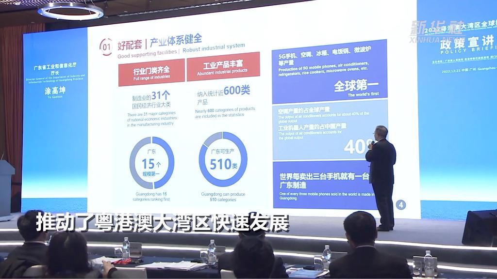 2022粤港澳大湾区全球招商大会21日在广州举行。粤港澳大湾区涵盖香港、澳门和广东省珠三角9市,是中国开放程度最高、经济活力最强的区域之一。