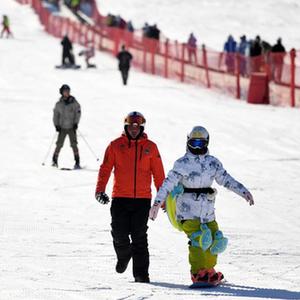 12月28日,在北京渔阳国际滑雪场,市民(前右)练习滑雪。新华社记者 任超 摄
