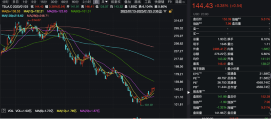 另一个值得关注的问题是特斯拉的股价。在2022年下半年,特斯拉股价经历了相当长的下跌过程。一度从314美元下跌至100美元附近,资本市场对特斯拉的未来产生了巨大担忧。
