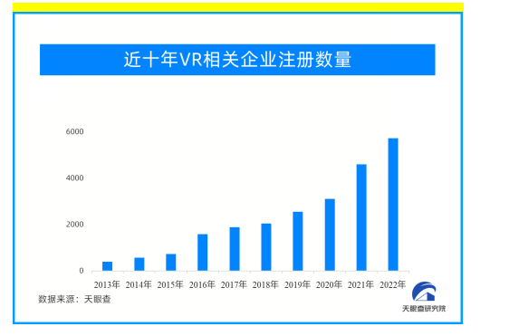 自从鸡鸭鱼肉不再是春节所独有的货品,人们对春节的追求就再也不只是“吃顿好的”了。时代的发展速度已经很难用准确的词来形容,而技术的日新月异更是诞生了诸多充满“智慧”的新年货。作为日渐成为市场消费主流人群的年轻人,大多选择更新的、技术范儿更足的科技产品,来取代家中的传统工具。洗地机、烘干机、空气炸锅等,全新的家居产品不仅让新春的家中有焕然一新之感,更让老一辈人也切实感受到科技发展对真实生活的便利性、智能性的改变。值得一提的是,几年前还受到热捧的智能手机,如今已经“备受冷落”了,在春节消费中,取代了以往智能手机地位的是VR相关的穿戴产品。“春晚都看见VR裸眼3D的效果了,就跟明星真的在眼前一样。”随着各类技术迅速普及在生活中,很多中老年人也开始了解VR的内涵和魅力了。至于VR设备现在究竟有多火?据天眼查数据显示,截至目前,国内共有VR相关企业2.3万余家。其中,2022年新增注册企业超过5700家,增速为24.2%。从地域分布来看,广东省以7603家的绝对优势位居全国首位;江苏、山东两省分别以1692家和1352家分列第二和第三位。