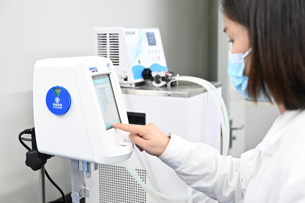 上海汇禾医疗科技有限公司研发人员在实验室内调试设备。新华社记者桑彤 摄