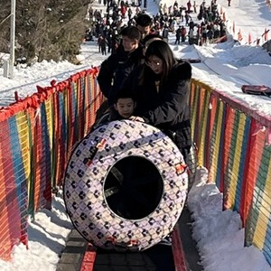 在太原市玉泉山景区,游客们排队体验冰雪项目(2月4日摄)。 新华社记者 王皓 摄