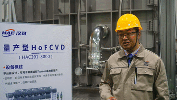 “简单地说,它是一台可以给光伏硅片镀膜的机器,相当于给硅片穿了一件衣服,这是光伏硅片制备中的一项重要工艺,能提升硅片发电能力。”站在银灰色大“门”前,江西汉可泛半导体技术有限公司创始人黄海宾解释说,里面一次可给360片硅片镀膜,数量比当前行业主流设备多出一倍,生产出的硅片发电效率也优于行业水平。