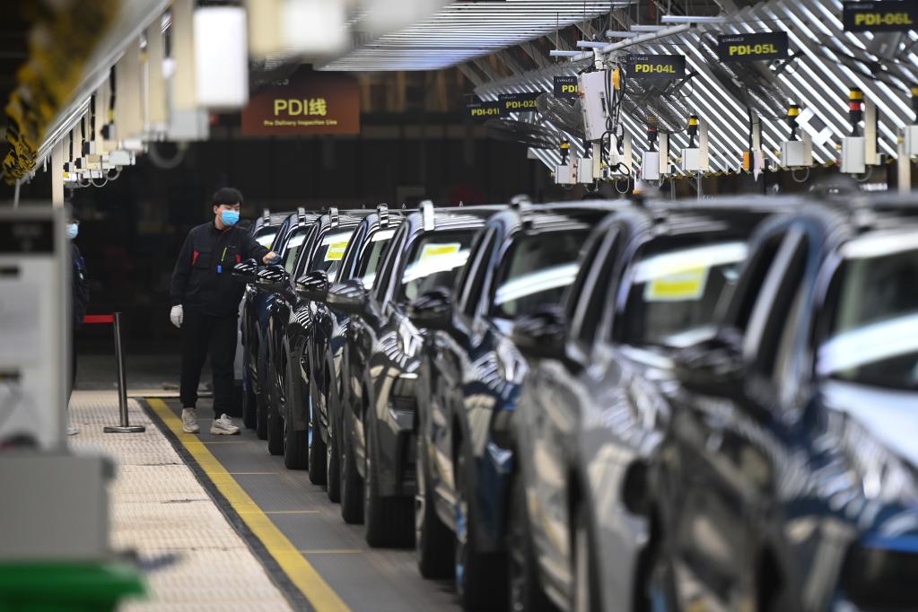 工人在领克汽车浙江余姚工厂总装车间进行下线前的检查工序(2023年1月5日 新华社记者黄宗治摄)。