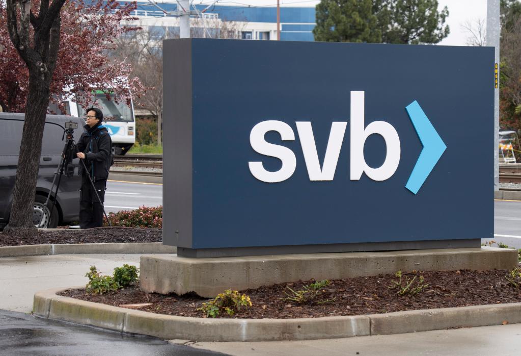 这是3月10日在美国加利福尼亚州圣克拉拉市硅谷银行总部外拍摄的银行标识。新华社发(李建国摄)
