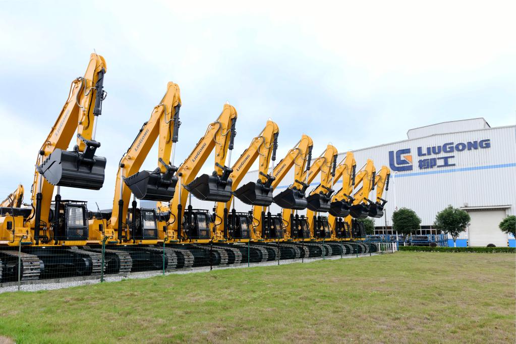 图为从工厂下线等待运至销售市场的柳工机械。(资料图片)