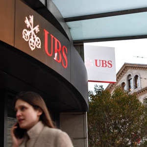 这是3月20日在瑞士日内瓦拍摄的瑞银集团标识。新华社记者 连漪 摄
