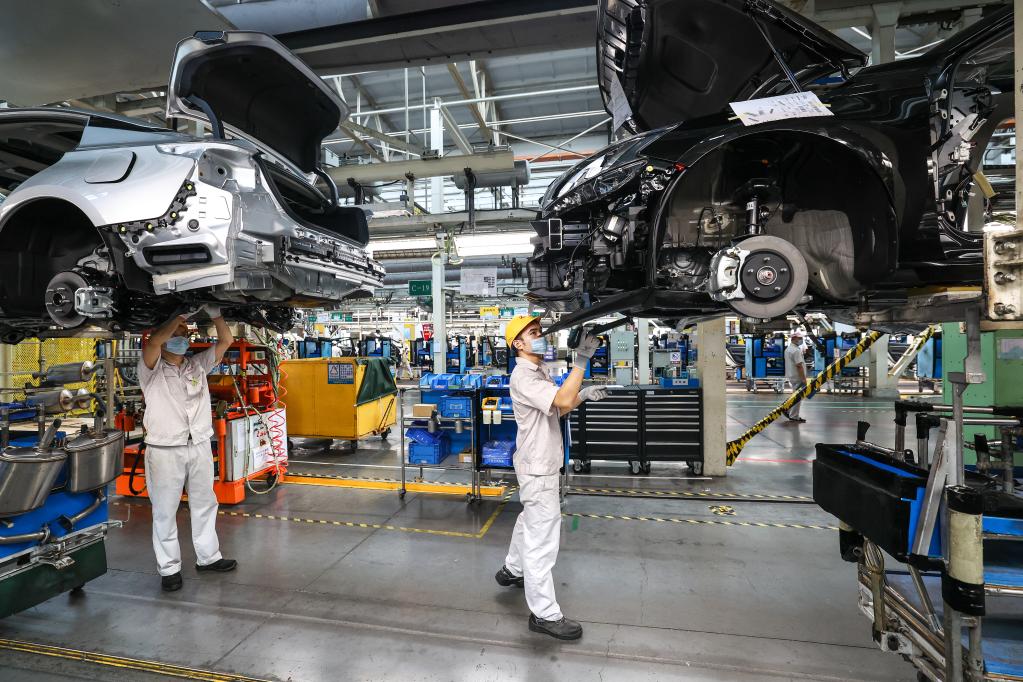 在襄阳高新区的东风日产襄阳工厂,工人们在生产线上忙碌。杨东 摄